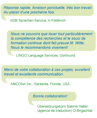Afin de vous garantir un haut niveau de qualité terminologique et stylistique, nous effectuons 95% de nos traductions de l’allemand vers l’anglais en appliquant le principe des quatre yeux comme suit: